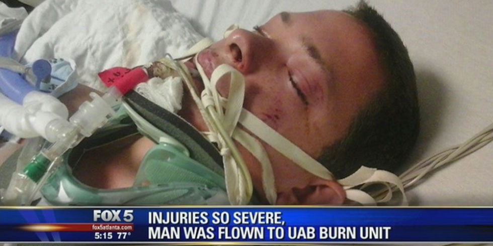 James was flown to the university of Alabama Burn Unit, were he spent a week in ICU. More than six weeks after the accidents, James is still unable to eat solid food and is being fitting for a prosthetic to close the hole in his mouth.